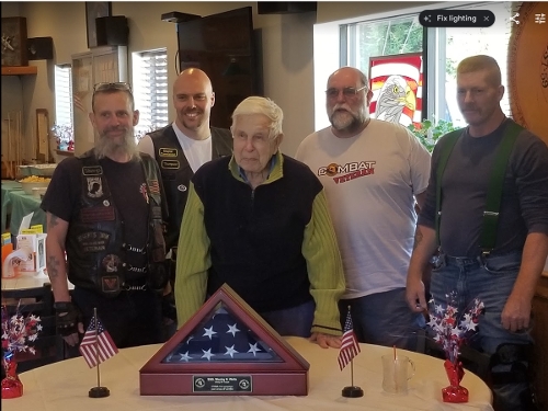 5-4 presented a WWII POW Westley Wells with a flag case in appreciation for his sacrifices.